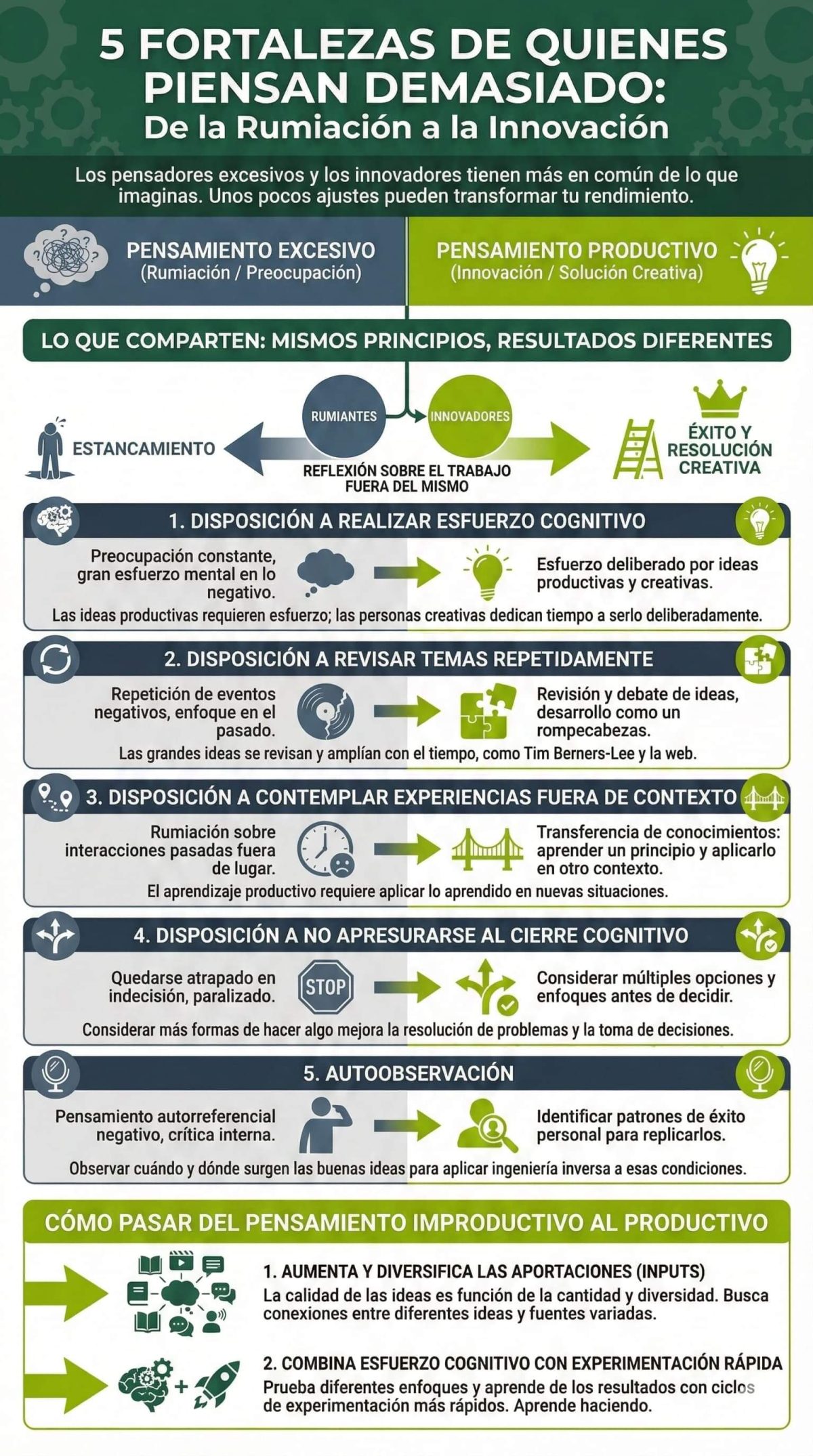 - Tu overthinking esconde fortalezas: perseverancia, creatividad, pensamiento crítico, autoobservación.